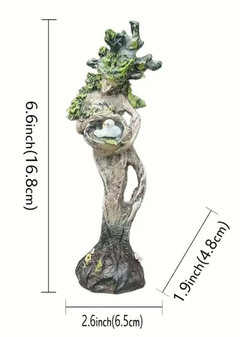Ši miško deivės statulėlė – tai fantazijos pasaulio įkvėpta interjero detalė, kuri į namus įneša gamtos nuotaikos, švelnios mistikos ir jaukumo. Skulptūrėlė primena miško globėją: organiškos formos, natūralūs atspalviai ir išraiškingos detalės sukuria „gyvą“ miško jausmą net miesto namuose.