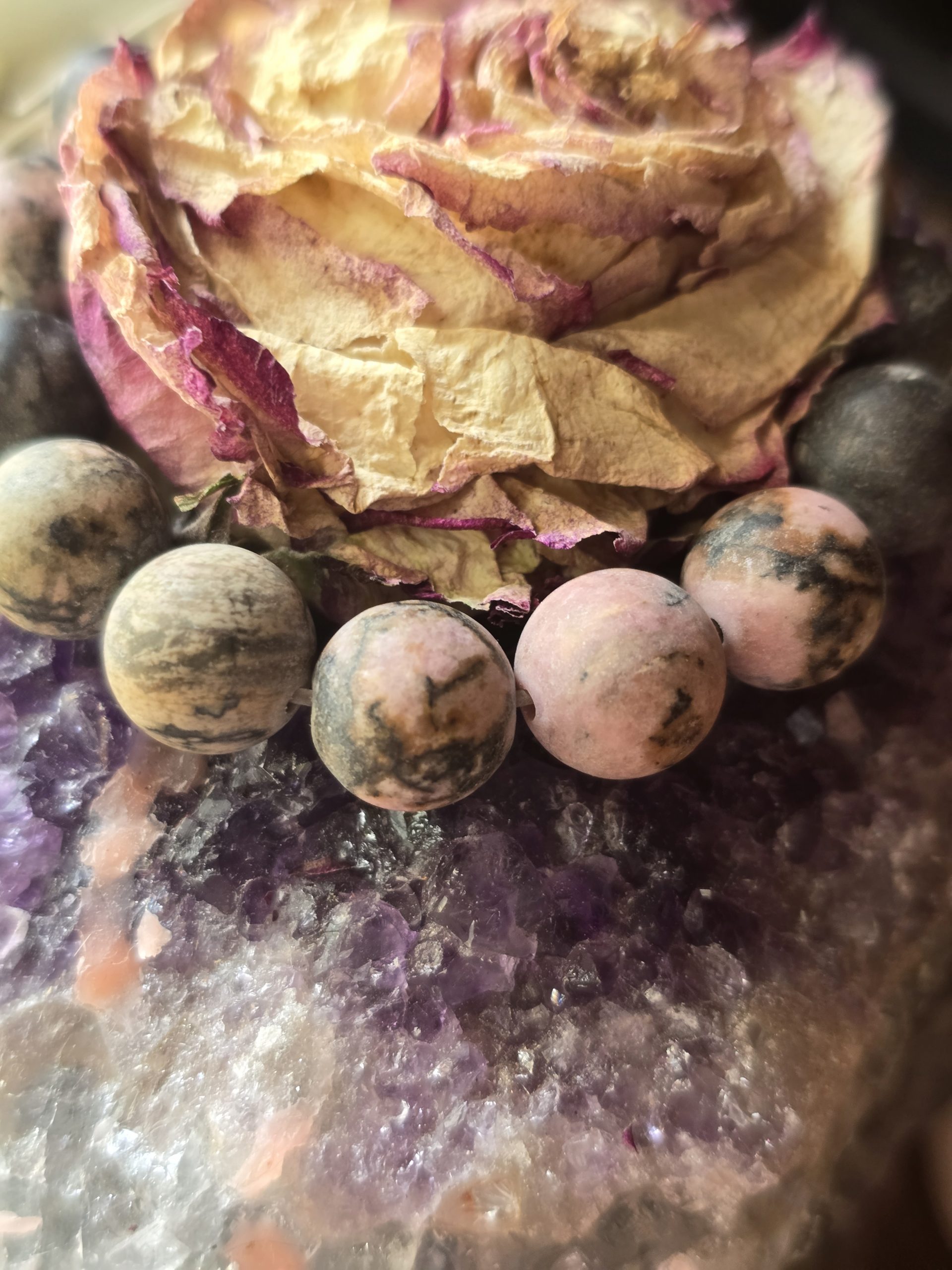 tai emocinių žaizdų gydytojas ir santykių harmonizatorius. Jo švelni, bet stipri vibracija padeda išgyti po skaudžių patirčių, skatina atleidimą sau ir kitiems, leidžia paleisti pyktį ar nusivylimą. Jis rezonuoja su širdies čakra, todėl puikiai tinka poroms, šeimoms ar tiems, kurie dirba su žmonėmis – padeda kurti atjautą, pagarbią komunikaciją, stiprų emocinį ryšį. Rodonitas taip pat padeda subalansuoti emocijas, kai jaučiamas pavydas, kaltės jausmas ar baimė prarasti. Tai akmuo tiems, kurie nori ne tik mylėti, bet ir būti mylimi sveiku, subalansuotu būdu.