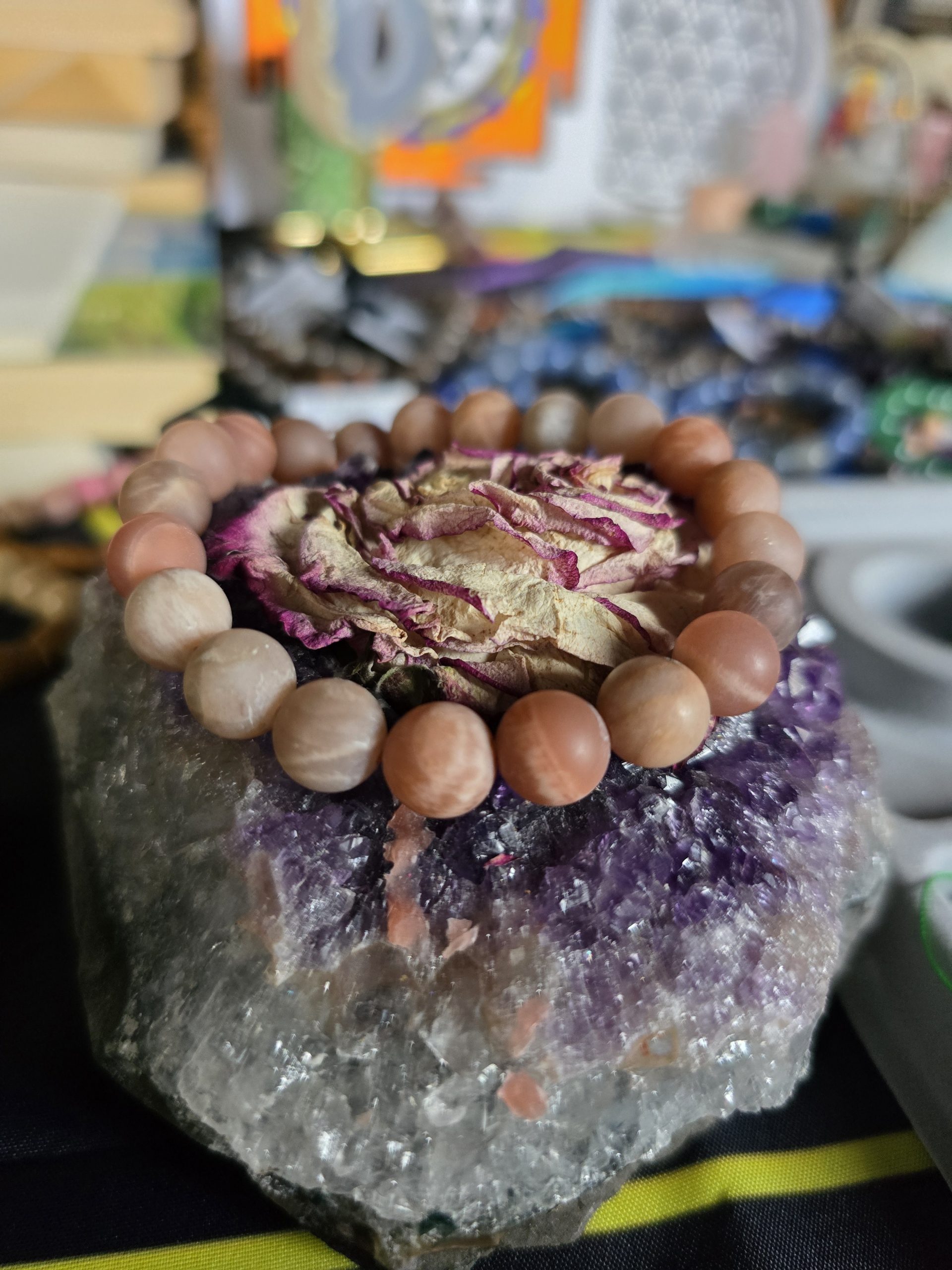 Saulės akmuo – tai šviesos, laisvės ir pozityvumo kristalas. Jis rezonuoja su saulės rezginio čakra ir padeda atgaivinti sielos džiaugsmą, savivertę, gyvybinį spindėjimą. Tai kristalas, kuris išsklaido tamsą, suteikia drąsos būti matomam, išreikšti save be baimės ir abejonių. Saulės akmuo tinka žmonėms, kurie nori išsilaisvinti iš nuvertinimo, emocinio slopinimo ar baimės būti savimi. Jis įkvepia kūrybai, padeda pritraukti gausą ir vidinę stiprybę. Puikus nešioti tiems, kas siekia daugiau džiaugsmo, šviesos ir sėkmės gyvenime.