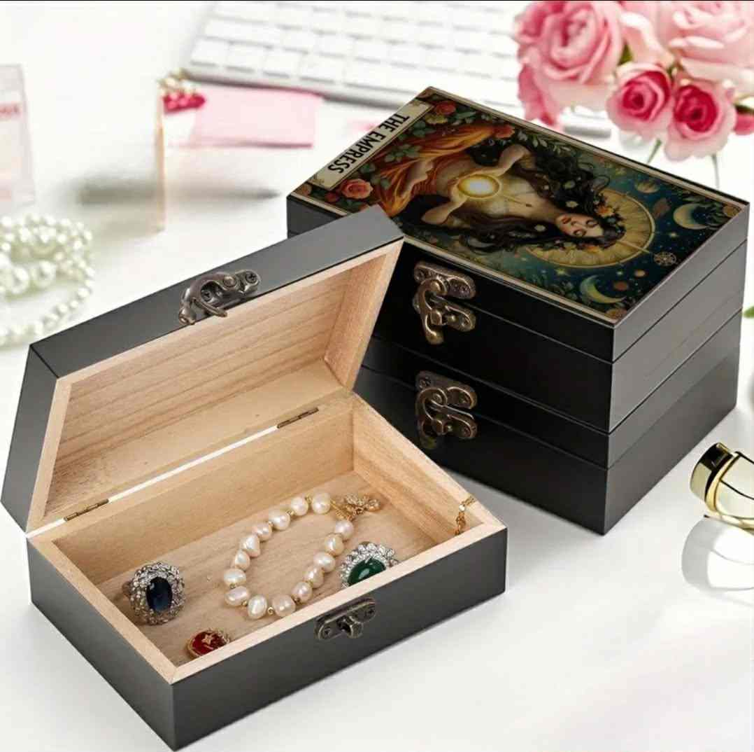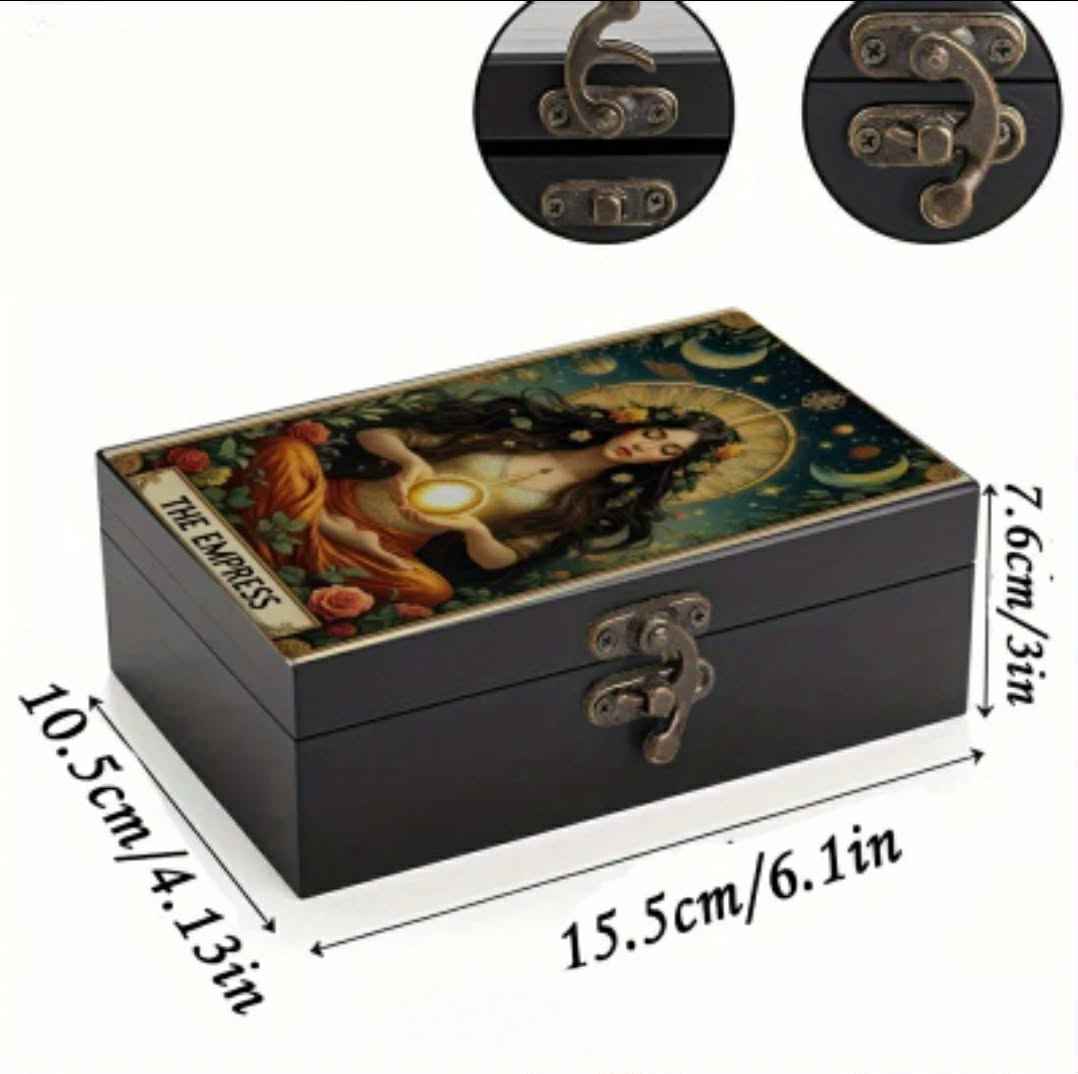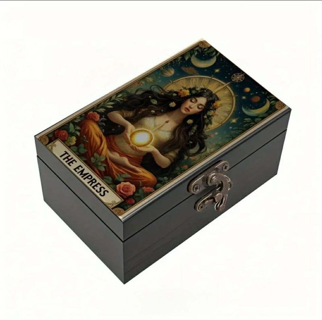 Elegantiška, uždaroma medinė dėžutė kortoms ir kitiems smulkiems daiktams laikyti. Dekoruota „Imperatorienės“ simbolika – moteriškos galios, kūrybos ir gausos archetipu.
