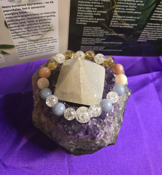 Tai apyrankė, kuri sujungia dangišką ramybę, širdies gydymą ir šviesią gyvenimo energiją.