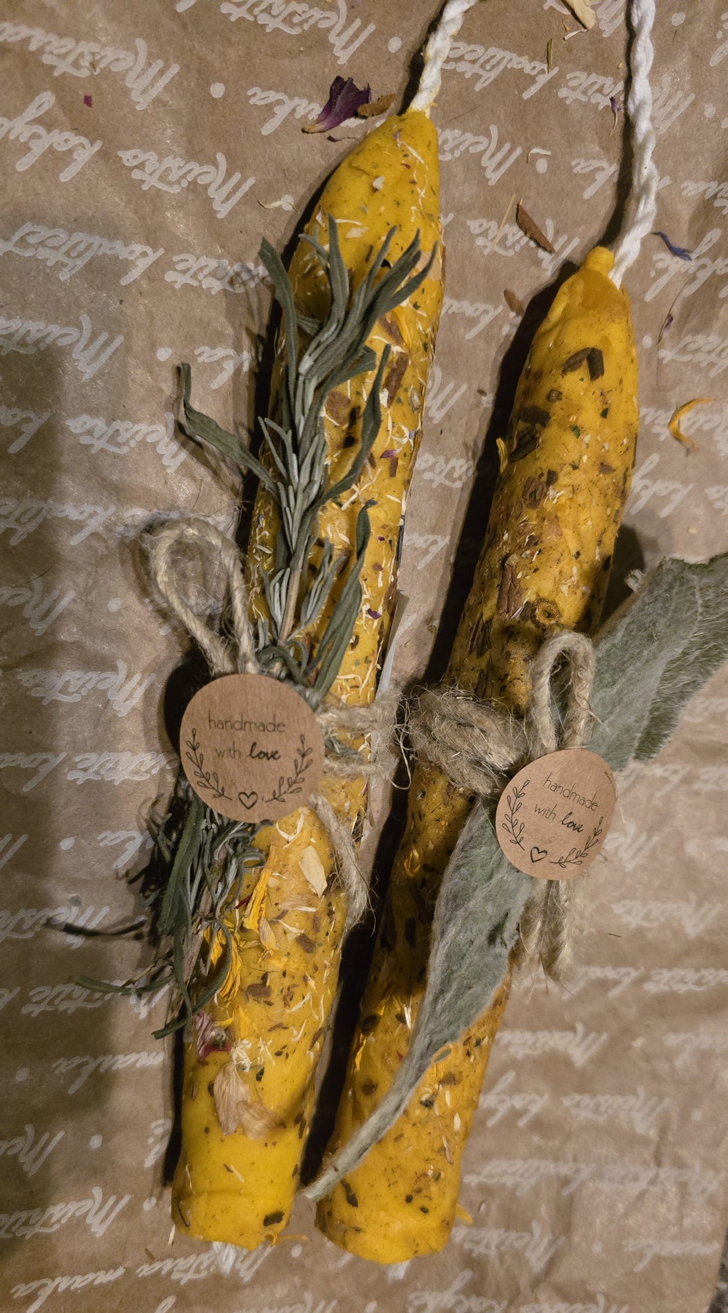 Šios žvakės yra užkrautos maldomis ir tam tikromis žolelėmis, kurios padeda išvalyti erdvę. Po valymo jaučiamas švaros ir gaivos pojūtis.
